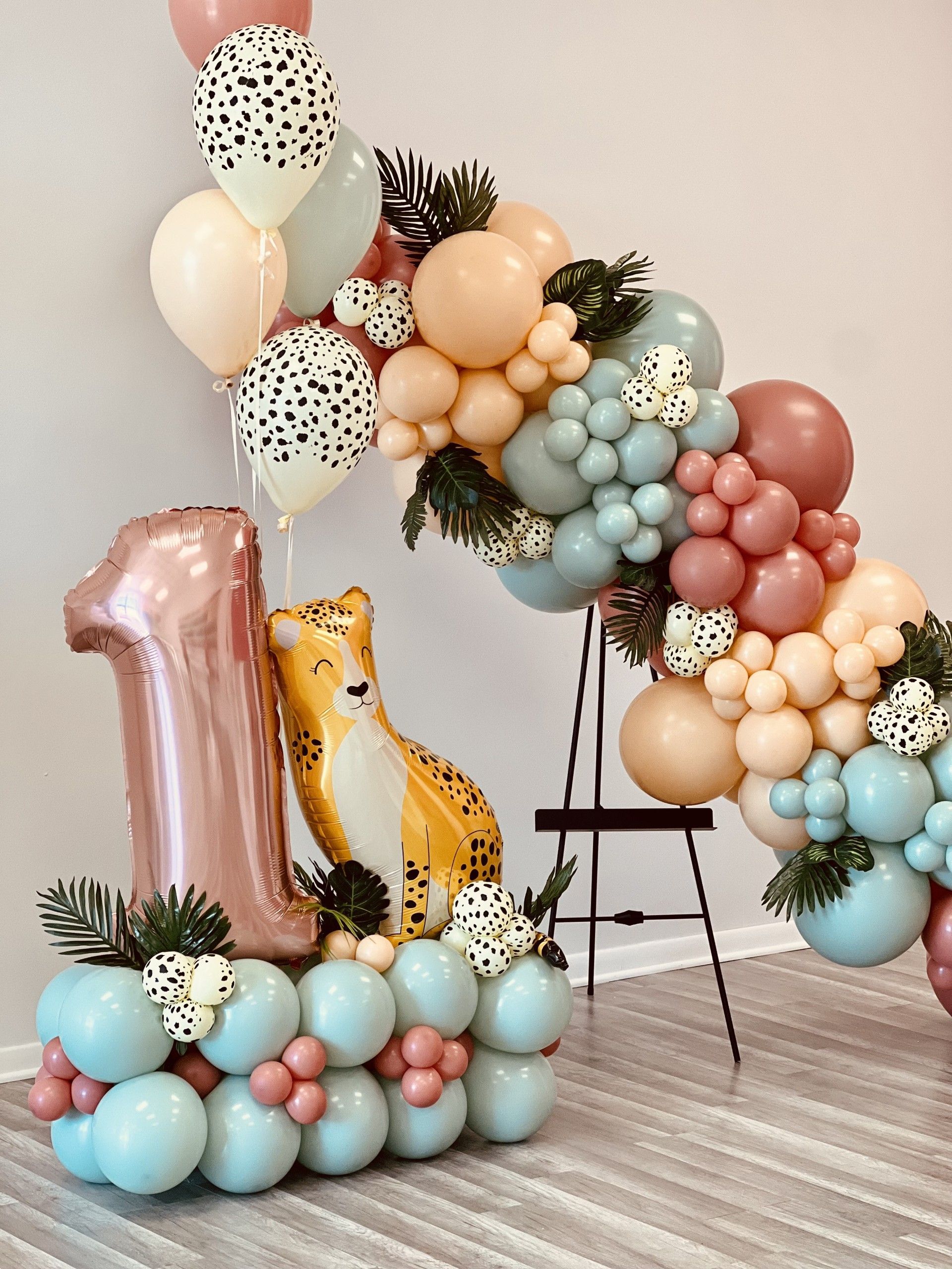 A Grab & Go balloon garland is a pre-made, ready-to-hang balloon arrangement designed for convenience and quick setup. These garlands are crafted with a variety of high-quality balloons in different sizes, colors, and textures, creating a visually dynamic and festive display.