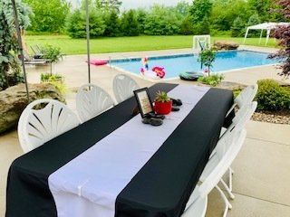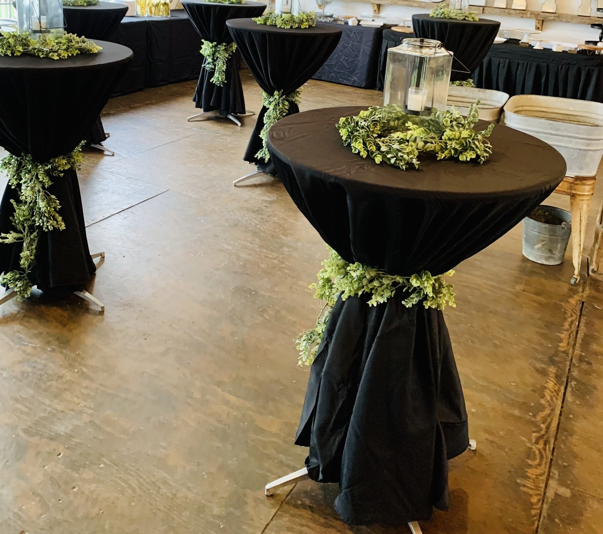 - Tables: Round (60 in), Rectangle 6ft and 8ft, chill tables (for ice) 4ft and 6ft includes skirt, bar top tables